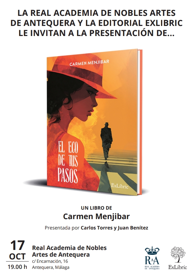 La Real Academia de Nobles Artes de Antequera será el próximo viernes el escenario de la presentación de la segunda novela de Carmen Menjíbar, «El eco de tus pasos».