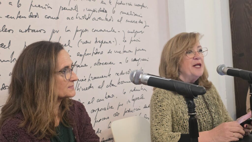 Carmen Parejo (dcha), moderadora del acto, presentando a la invitada MªCarmen Rodríguez González