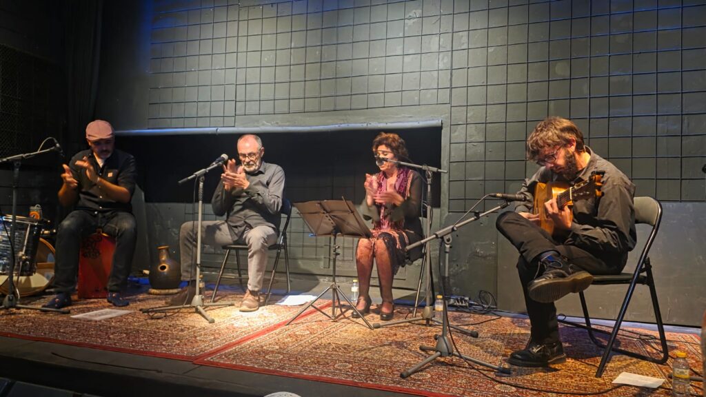 El público deja de ser mero espectador; es cómplice, parte de la música. Palmas, suspiros y murmullos se entrelazan con guitarra, voz y percusión, creando un mar de sonidos que fluye como lava sobre la noche.