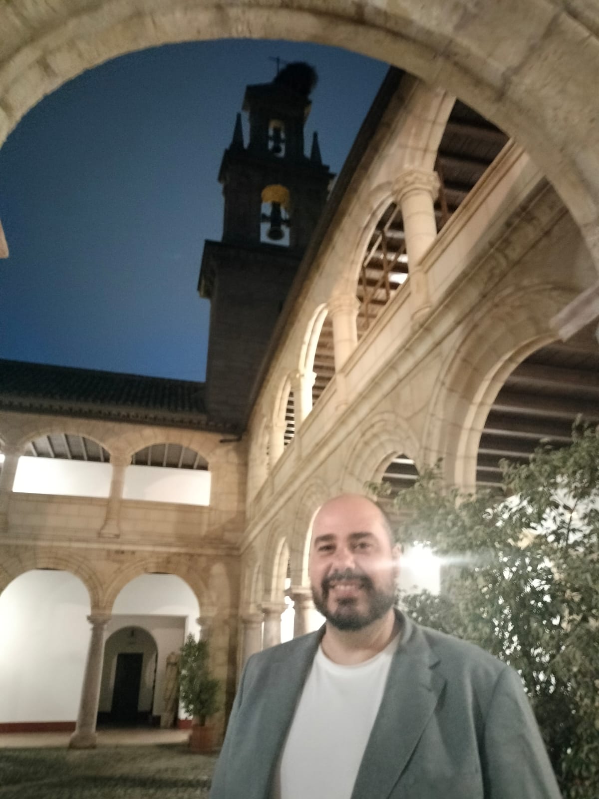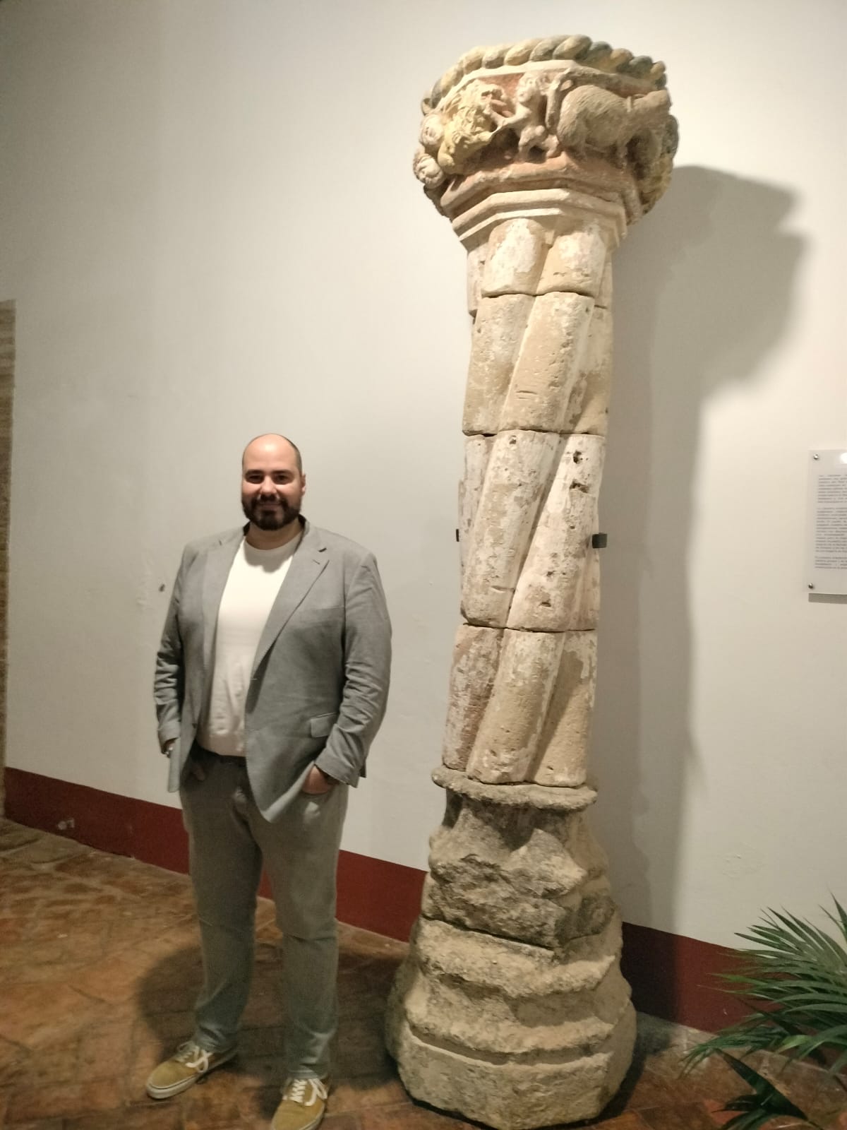 Antonio Pampliega junto a una de las columnas originales del claustro del antiguo convento de San Zoilo,