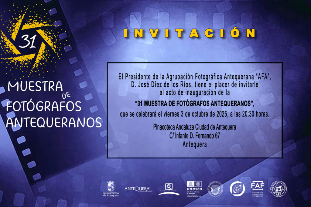 Y es que, en este contexto íntimo y dorado que ya tenemos en el ambiente, vuelve una de las citas más queridas y esperadas en el calendario cultural de Antequera: la 31ª Muestra de Fotógrafos Antequeranos, organizada por la AFA (Agrupación Fotográfica Antequerana). Un encuentro que es más que una exposición, porque anima a despertar la sensibilidad de los ojos y admirar el gesto compartido, de la memoria y la mirada del otro, de quien capturó el instante.