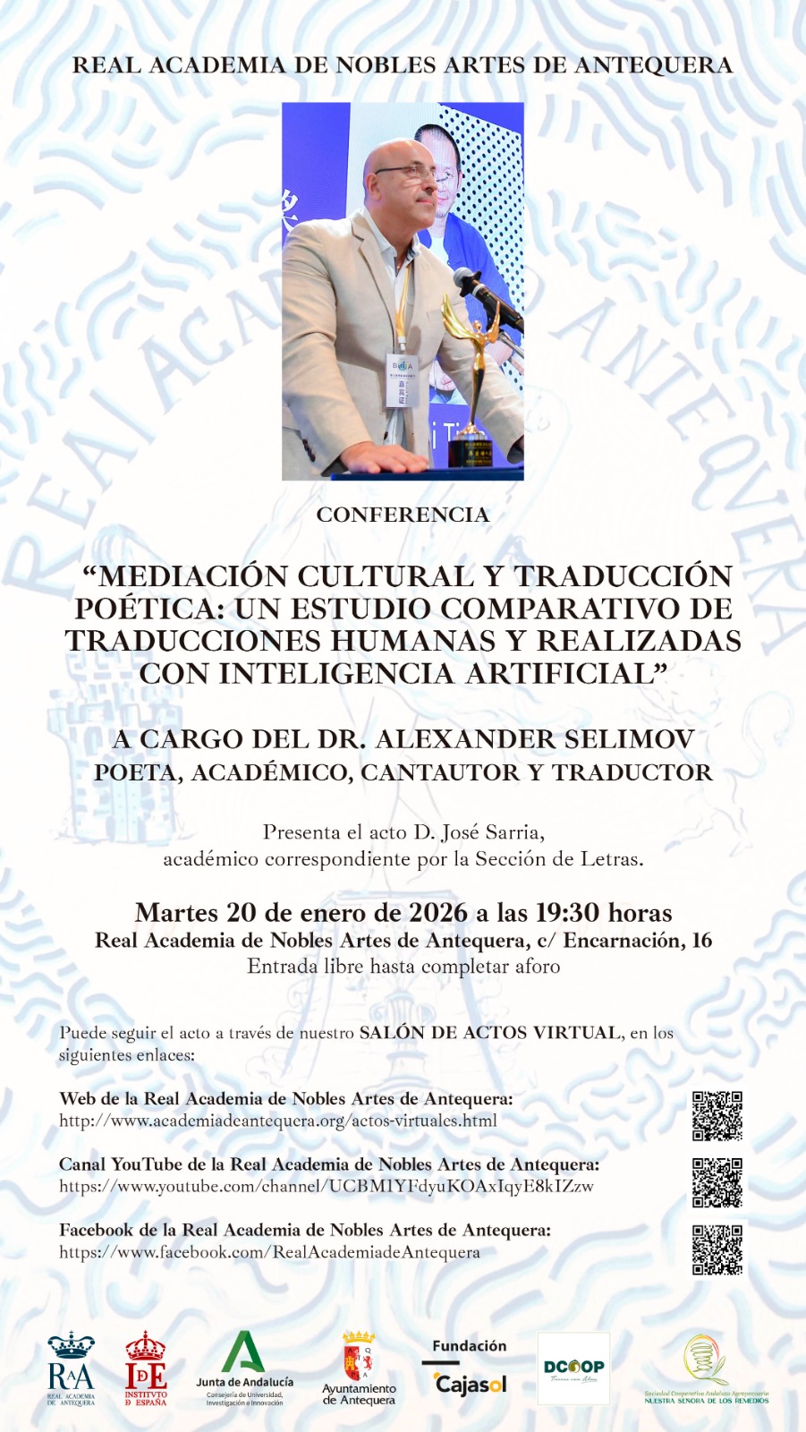 El próximo martes 20 de enero, a las 19:30 h, tendrá lugar en la Real Academia de Nobles Artes de Antequera, una conferencia que promete quedarse en la memoria de quienes asistan.