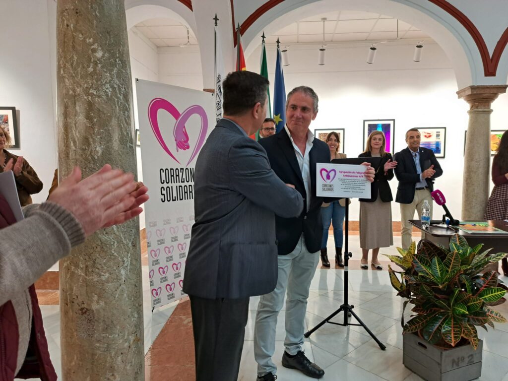 También hubo un reconocimiento de Corazones Solidarios hacia la AFA . José Díez de los Ríos lo recibió como presidente e hizo extensivo tanto a la Junta Directiva, como a los socios de la Agrupación Fotográfica Antequerana.