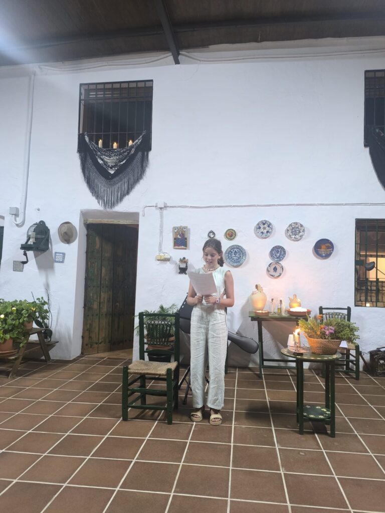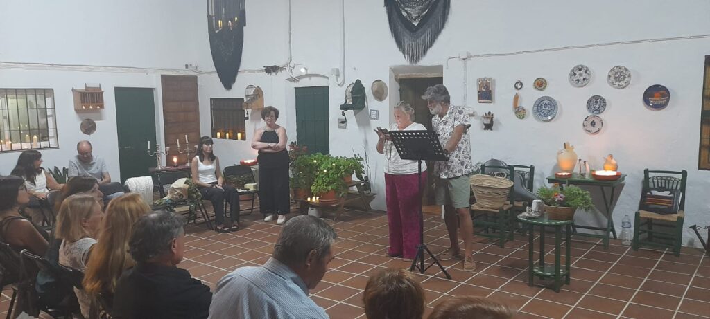 La sugerencia de Marina Pérez, admirada actriz y directora amateur de teatro, de realizar un acto de noche Lorquiana tuvo un eco en María Córdoba y en sus colaboradores habituales de este encuentro veraniego: Juan López Rama, Pilar Ruiz Muñoz y Paula Ramírez, que se pusieron enseguida manos a la obra con una organización en la que juntos mimaron los detalles.