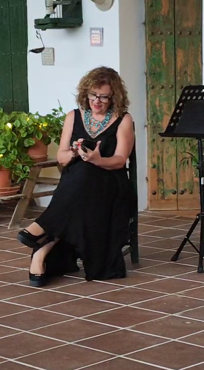 La guitarrista Cecilia Pérez Trani (quédense con su nombre, porque hoy con 17 años, después de haber estudiado Guitarra en el Conservatorio ‘Ana Cárdenas‘, de Antequera, y en el profesional de Música en Málaga, ‘Manuel Carra’; y después de ser seleccionada entre miles de candidatos para poder estudiar los `próximos cuatro años la carrera Superior de Música en el exclusivo y prestigioso Conservatorio Musikene de San Sebastián, su virtuosismo la llevará a ser una de las principales figuras de la Guitarra en el mundo. Lo auguro) interpretó distintos estudios relacionados envolviendo con sus acordes y su armonía melodías de época y sabor andaluz que evocaban el sentimiento poético de Federico, en un tapiz sonoro muy bien elegido por ella misma.