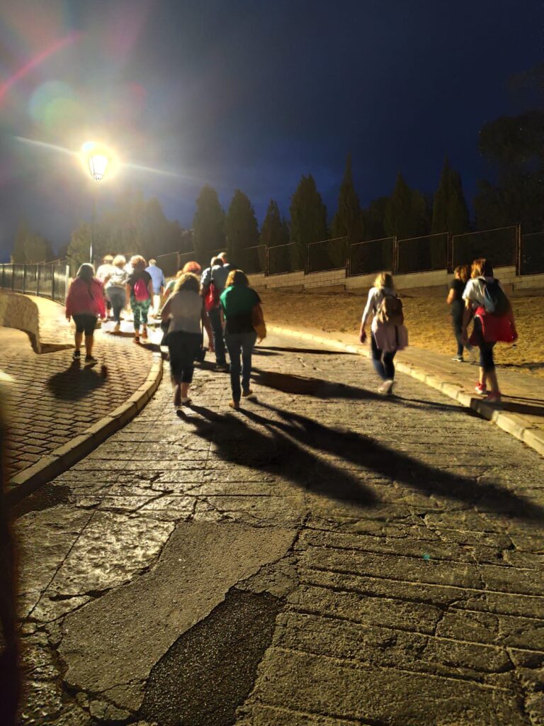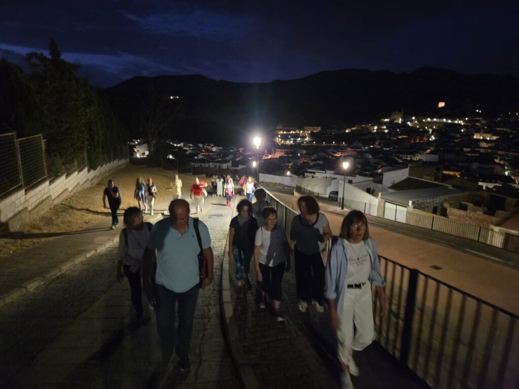 En la llegada y durante el rato que tuvimos de noche y con luz, cada uno y cada una puso sus ojos donde quiso. Las vistas a los cuatro puntos cardinales de la ciudad son impresionantes. También pudimos entrar en la ermita y saborear la historia (que habíamos leído previamente con sendos artículos de Manolo Rodríguez en su blog y de Jesús Romero en El Sol de Antequera).