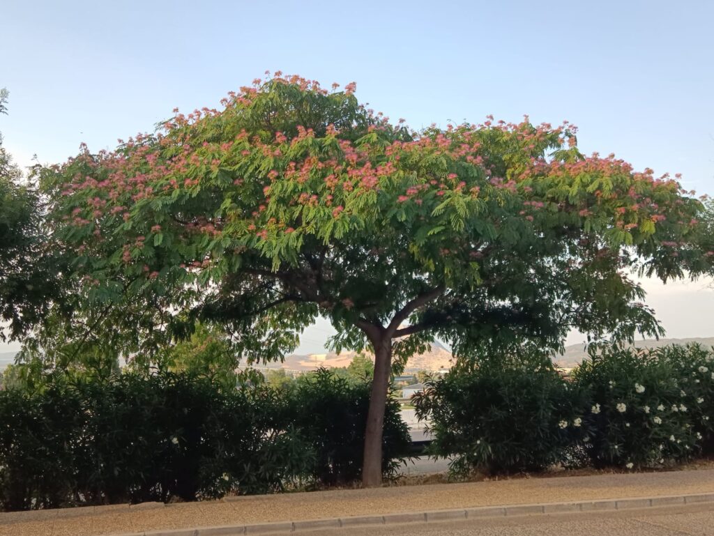 Antequera, como tantas ciudades con alma, necesita árboles que no solo den sombra, sino que cuenten historias. La Albizia julibrissin lo hace con su lenguaje vegetal: sutil, aromático, elegante. No es un árbol masivo, ni de masas: es un árbol con vocación de confidencia. Un susurro verde entre los bloques. No siempre bien entendida, no siempre bien tratada, pero innegablemente necesaria. Porque su floración es un gesto de gratitud, y porque “Albizia y Antequera” suena a advertencia para navegantes… o quizás a invitación para poetas.
