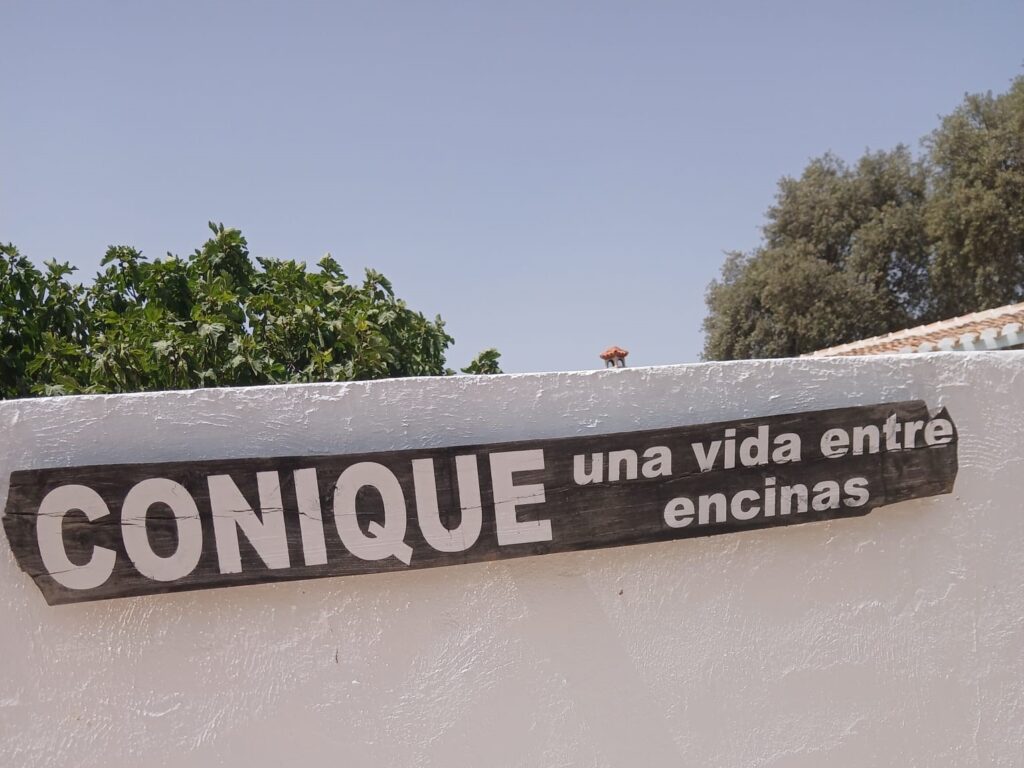 A la entrada del Cortijo Conique, en Archidona, un cartel sencillo “Una vida entre encinas” da la bienvenida a quien llega.