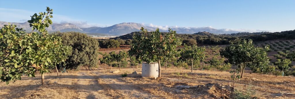 Hoy, Conique empieza a devolver lo recibido. Los árboles ya muestran los primeros frutos con forma y carácter. La finca ha entrado en su edad productiva, y aunque aún queda recorrido para alcanzar su máximo rendimiento, el camino está marcado. Los pistachos, por fin, han brotado de la tierra como respuesta a una promesa cumplida.