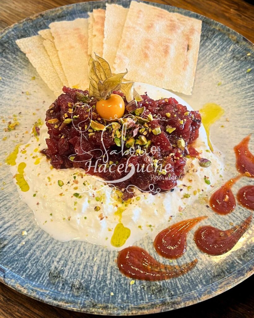 Su toque de distinción también está en platos tradicionales. Desde los tartares de atún rojo con burrata y pistacho hasta la clásica porrilla de espinacas o la tarta de queso de cabra, sus platos están pensados para enamorar tanto al paladar como a la vista. Porque en su forma de entender la cocina, comer también es mirar, escuchar, sentir. La carta es variadísima y en constante movimiento de novedades.