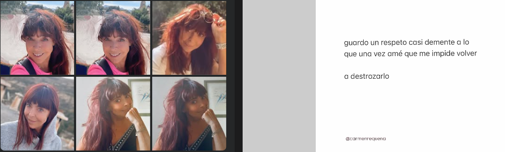 Carmen Requena es para mí uno de esos hallazgos que sorprenden y cautivan, un espíritu artístico cuya presencia virtual no es una mera colección de frases, porque es un puente hacia mundos interiores.